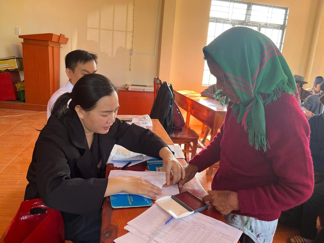 Cán bộ hướng dẫn nhiệt tình, thực hiện chi trả trợ cấp trực tiếp cho các đối tượng BTXH, nhất là các đối tượng yếu thế trên địa bàn xã