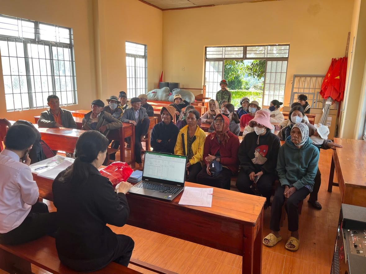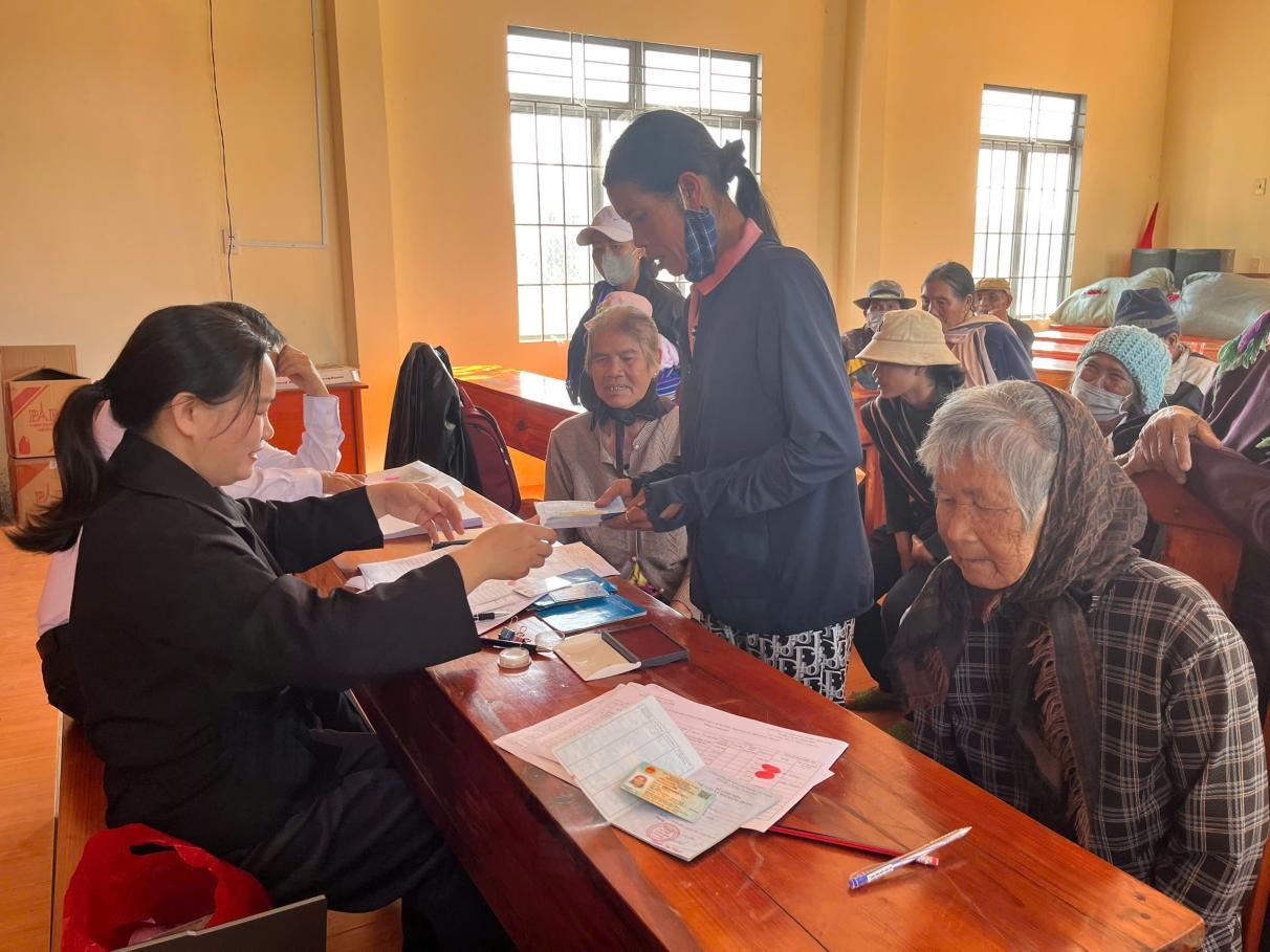 Thực hiện chi trả trợ cấp BTXH tại hội trường thôn Ma Đanh (xã Đơn Dương)