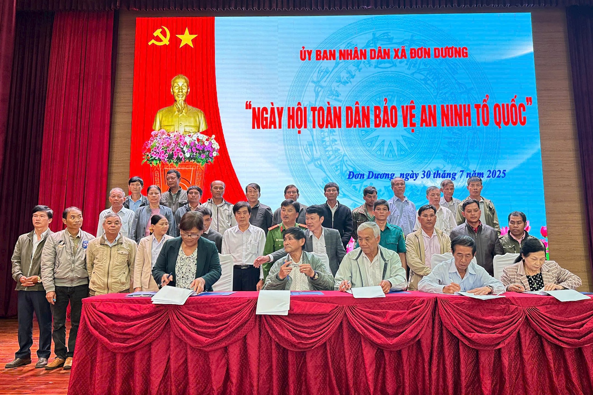 Đại diện các thôn, tổ dân phố trên địa bàn xã Đơn Dương ký kết giao ước thi đua thực hiện phong trào TDBVANTQ