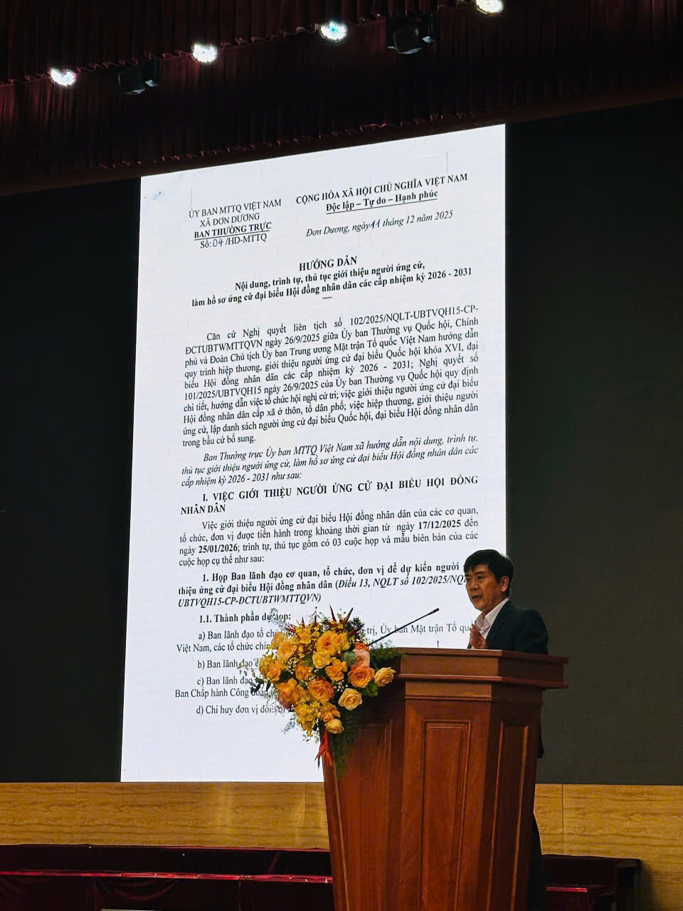 Ông Nguyễn Văn Vinh thông qua Nghị quyết số 01/NQ-UBBC ngày 18/12/2025 của Ủy ban bầu cử xã Đơn Dương
